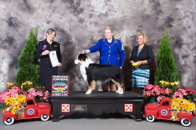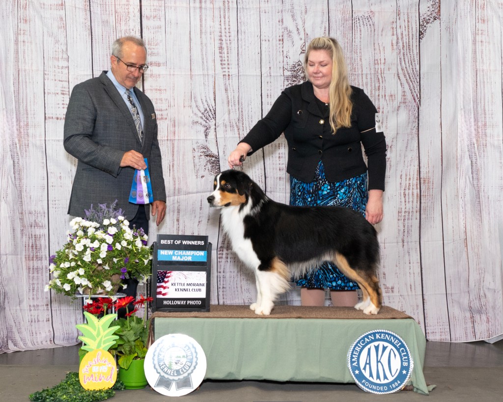 Sky has been shown in the Bred-By classes working towards obtaining his AKC Champion earning one of his Major wins and 9 points to date. He was Winner’s Dog and Best of Breed over Specials the first weekend shown in ASCA. He was awarded 4th Place Open Black Dog at the 2024 USASA National. He will continue to be limitedly shown in 2025.